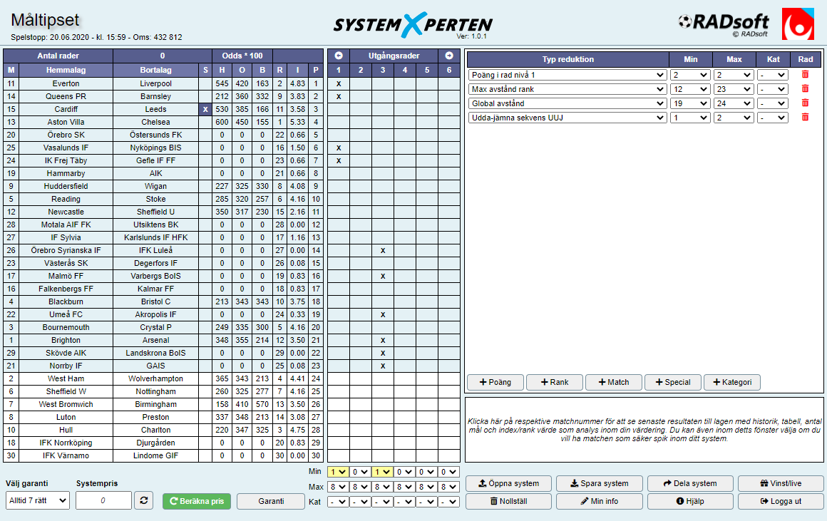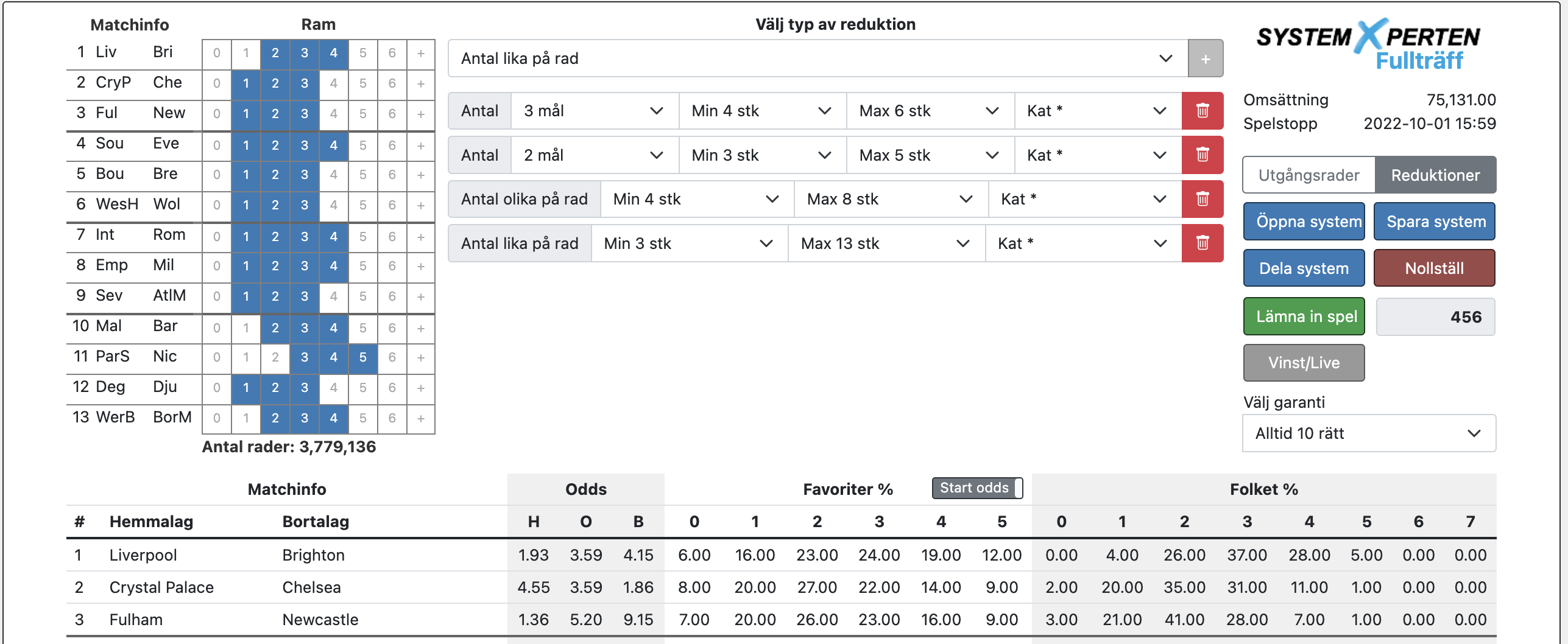 Med nya programmet för Måltipset som ingår i serien SystemXperten, så förstår du snabbt fördelarna med att sätta spelet i system. Programmet innehåller de absolut senaste reduceringarna så du kan spela så effektivt och vinstgivande som möjligt.