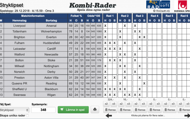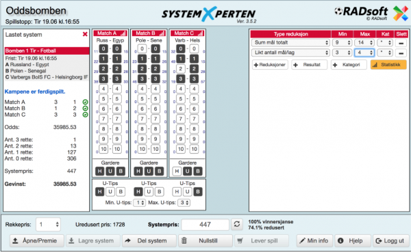 Med SystemXperten kan du spela på Tipset, Topptipset, PowerPlay, Oddset/Bomben, Måltipset och Fullträff. Du kan spela allt från enkla snabba system med 100% vinstgaranti. Du kan även spela mera avancerade systemspel med utgångsrader och reduktioner, statistik och mycket mera. Bollen ligger på straffpunkten och är din...